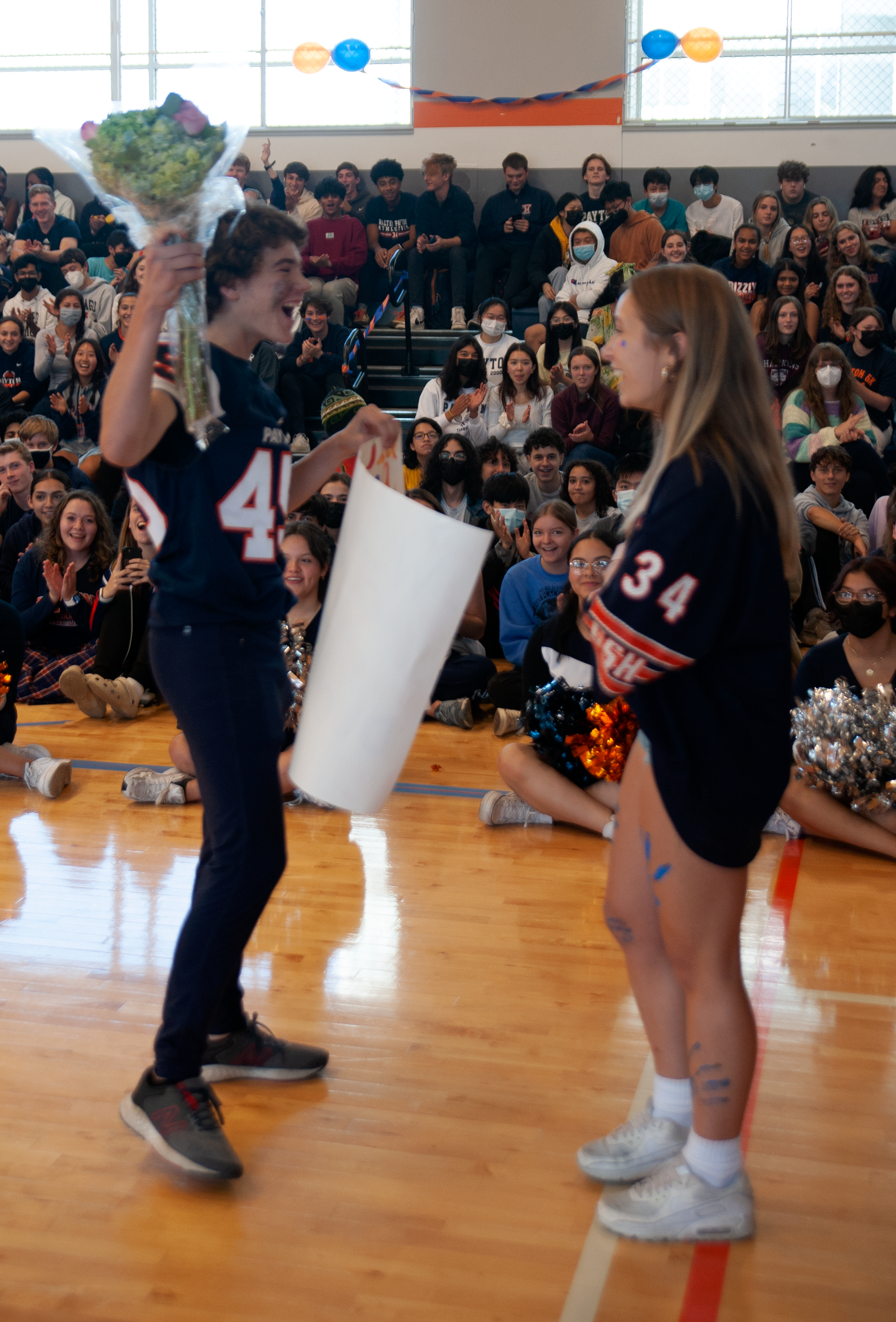 Poms kicked off the afternoon, with senior footballers joining them for a spirited performance. Soon afterwards, the entire football team got together for a successful Homecoming proposal from freshman Sam Merrill.