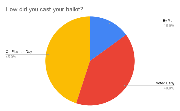 Of the people who voted, 85% cast their ballots in person, whether early or on election day. Among them was Ms. Kat, the Director of Climate and Culture, who voted early in her ward. She said that voting is very important to her, and she “believe[s] it is [her] civic duty as an American.”