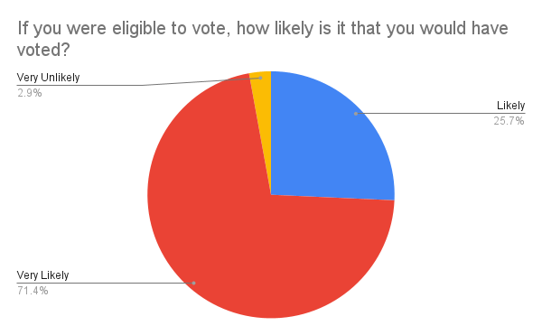 97% of respondents who were ineligible to vote indicated that they were either likely or very likely to have voted in this election if they would have been eligible to do so.