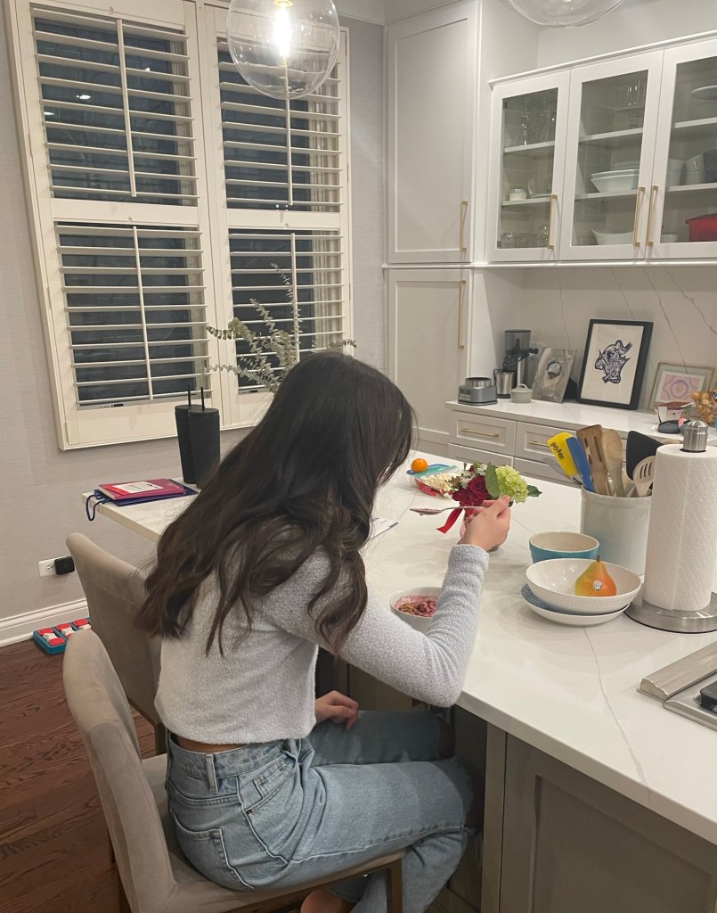 Students’ morning routine includes sitting down for a bowl of breakfast, while Dr. Ansari prefers a cup of coffee.