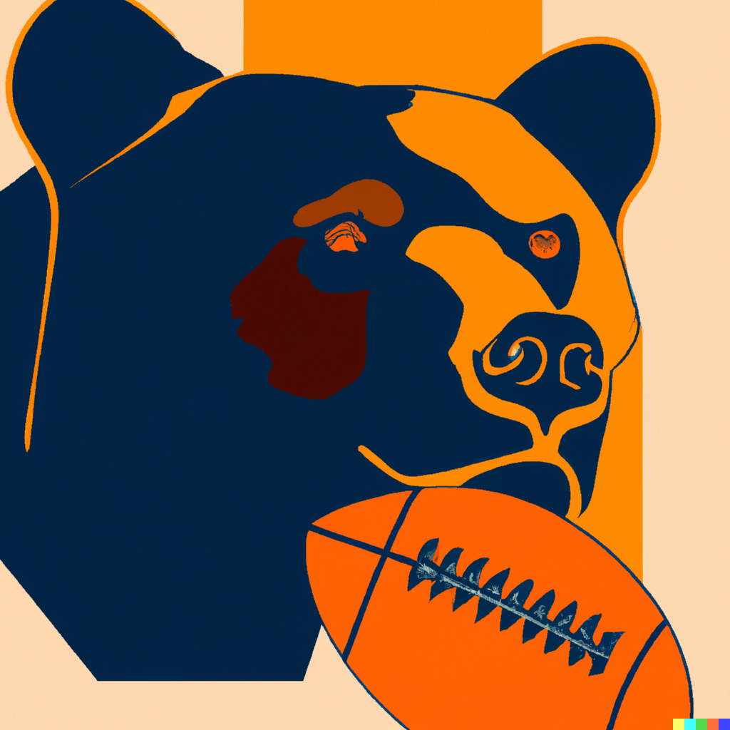 Chicago Bears fans are excited to see their team go far this season. Above, their mascot sports its favorite colors: navy and orange. (Image created with the help of DALL·E by Bridget Galibois)