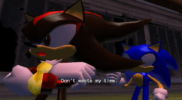 Shadow allowing Sonic to accompany him during an in-game cutscene
