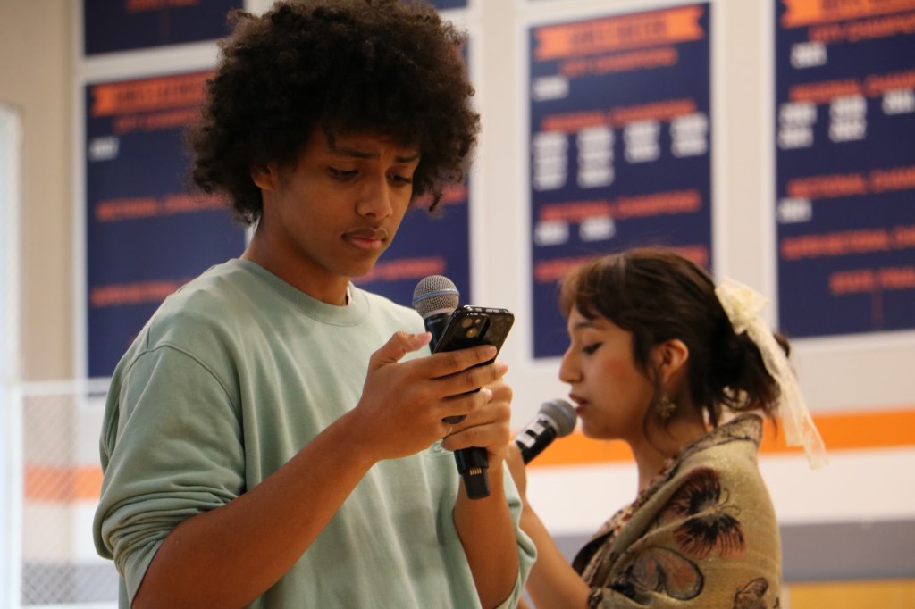 The Latin Music Ensemble’s performance was quickly followed by a multilingual spoken word piece from juniors Edson Alvarez and Camila Alvarado.