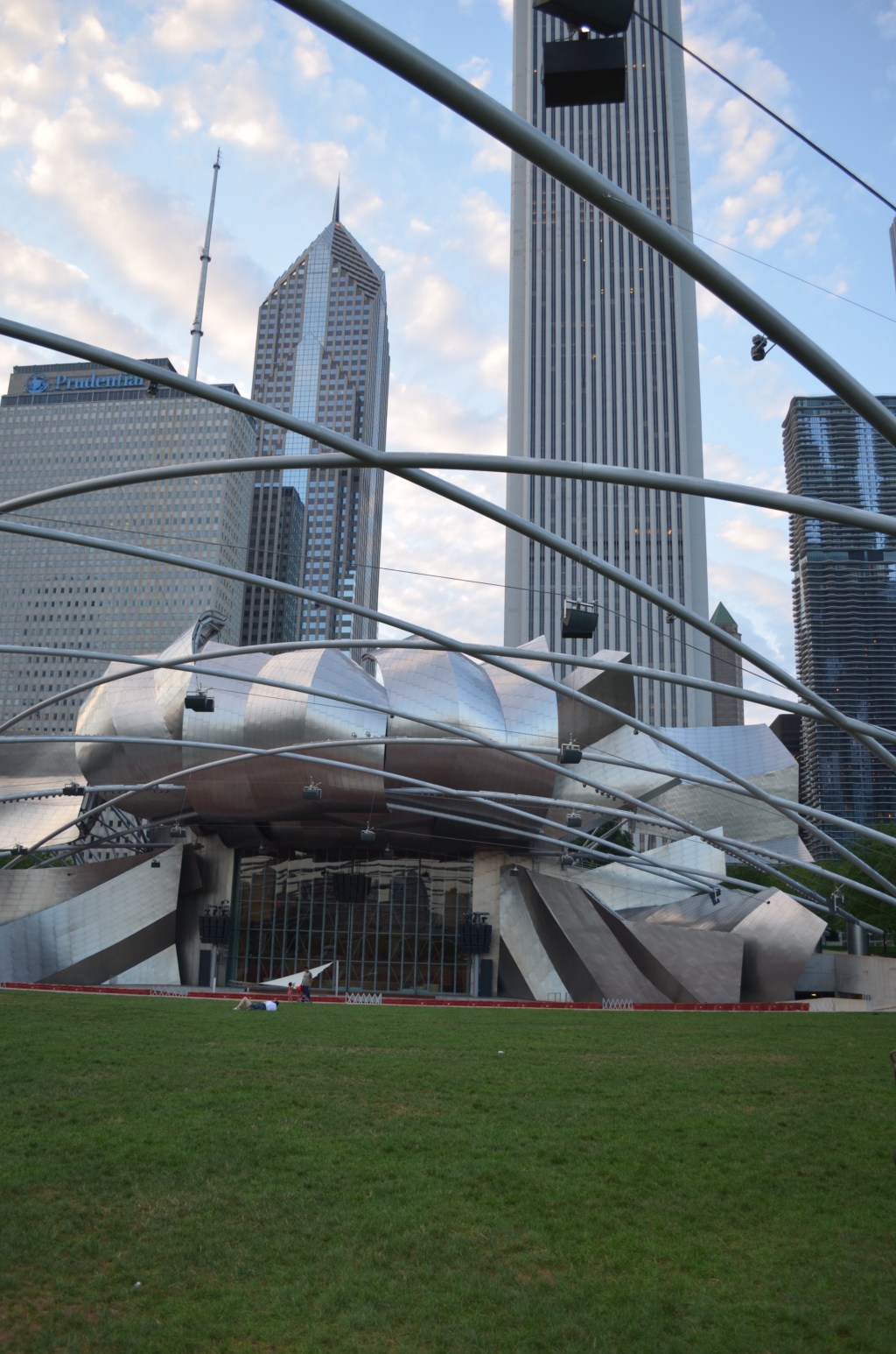 Despite his global fame and Chicago’s long-standing reputation as an architectural capital, Gehry’s connection to Chicago was unique and deeply influential. The Jay Pritzker Pavilion boasts curves of stainless steel that soar over a hundred feet into the air. Gehry has given our city a beautiful stage, designed to accommodate large choirs and orchestras and serving as the center of Millennium Park. Gehry also designed the BP Pedestrian Bridge to Chicago’s rich architectural landscape. Clad in stainless steel, it spans Columbus Drive to connect Maggie Daley Park with Millennium Park.