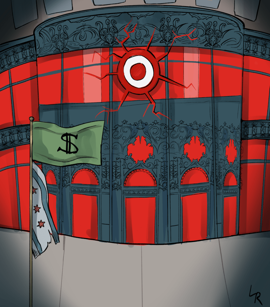 Chicago has seen many businesses come and go throughout the course of its history. Retail stores on the decline, bankrupt small businesses, old financial institutions and now-defunct city offices were all once housed in buildings. Many of those buildings were beautifully crafted, leaving behind hints of the taste and purpose they fulfilled at their time of construction, featuring ornate handiwork and complex detailing. These traces of Chicago’s architectural history now have modern purposes or have been left vacant. One striking example of this is the Sullivan Center, also known as the “Goth Target” located downtown. After the Great Chicago Fire, Leopold Schlesinger and David Mayer decided to move their dry goods store to that corner. After a dispute with architect Louis Sullivan over the number of floors, it ended up being 12 stories with an expansion onto Madison Street in order to support its height and with bronze-plated iron work around the frame to prevent damage from fire. It was bought by H. G. Selfridge and Co. in 1904 and was subsequently passed over to Carson Pirie Scott, an iconic department store chain. In 2006, it was announced they would be closing the retail location and the building remained unused until 2010, when Target moved in. The building’s history explains the mismatch between the decadent architecture of the past and the sterile store of the modern day.